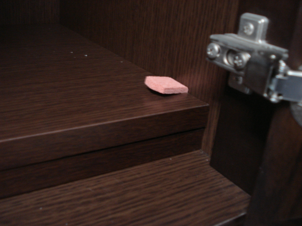 棚板・引戸に挟んで固定するスポンジ材。