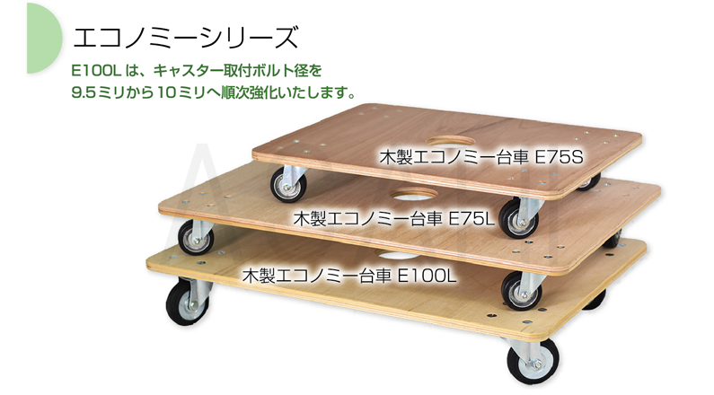 エコノミーシリーズE100Lは、キャスター取付ボルト径を9.5ミリから10ミリへ順次強化いたします。