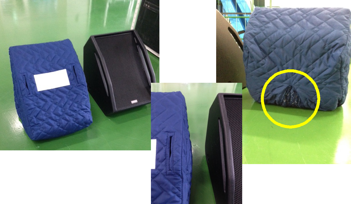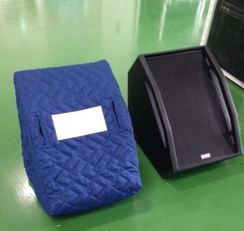 イベント会場などに設置されている小型(と言ってもそこそこ大きいですが)のスピーカー用のカバーです。
