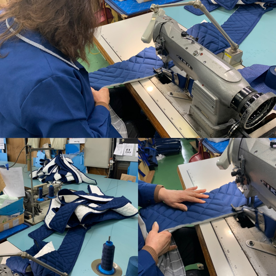 アサヒの製品をテレビで見かけることがあります。やはり目に付くのはブルーのフィットカバーですね!!廊下に敷いてあるエンジ色のマットも、家具に被せている紺色のカバーも、椅子を包んでいるカバーもすべて、私たちが作っている商品です。自分の会社で作っているものが目に留まるとき、深い感激とともに「この仕事に携わってきて本当に良かった!光栄だな」と思います。今は、特注品の縫製を担当しています。お客様のニーズに合ったモノづくりをこれからもしていきたい!その一念で今日もミシンに向き合っています。