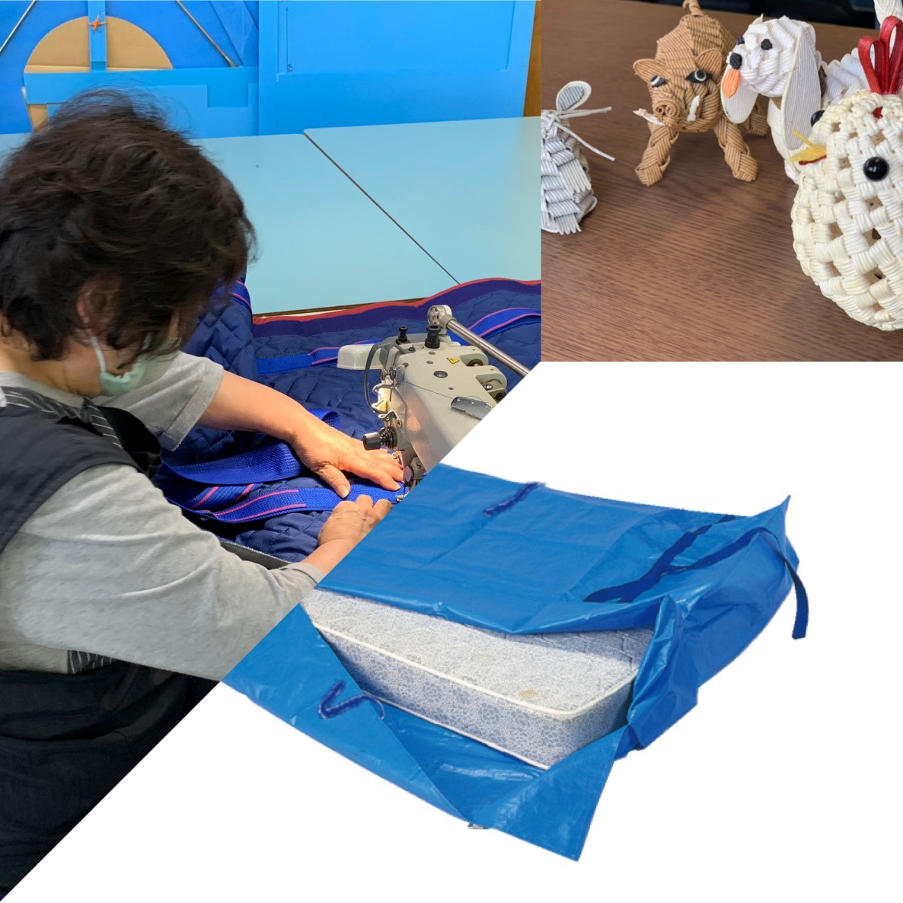 「これから何をしたらいいのだろう」と途方に暮れている時、ふと思い立って洋裁やバック作りを習うことにしました。そうしているうちに、アサヒの責任者から「仕事をしていないなら、もう一度アサヒで仕事をしませんか?」と声をかけられ再びアサヒで働き始めることにしました。主人の入院中も必要な身の回りの物を手作りしたり、介護用ベッドの手すりにつける備品入れのポケットをいくつもつけた「備品収納ポケット」を作ったり、仕事の無い日は自宅で注文を受けたバックを作り、紙紐細工も習い、人に教えることができるまでになりました。新しいものを作る・・・私は「モノづくり」が好きなんだ! 有意義で創造的な余暇の使い方が主人を失ったわたしの空洞をやさしく埋めてくれたように思います。