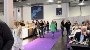 エッセンはドイツ北西部に位置する都市で、広い会場には20数個ほどのブースと講演会場があり、10時の開場直後、多くのお客様が来られました。メディアもいくつか来られて、その規模が伺えました。初日閉場後には、レセプションパーティのような、お酒や食事をつまみながら、他参加者の方々とコミュニケーションを取る場が設けられていました。