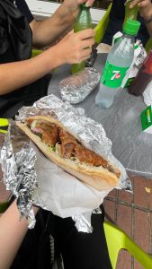 Nくんと一緒にパンフレットを配ったり、「うまい棒」をくばったりする係をしました。日本だとティッシュ配りやチラシをくばっている人がいても、あまりいい顔をされなかったり、断られてしまっているイメージがあったので、このお仕事が少し怖いと思っていましたが、みんなありがとうと言って笑顔で受け取ってくれて安心しました。そのせいもあり、だんだんと積極的に渡しに行くことが出来るようになっていきました。